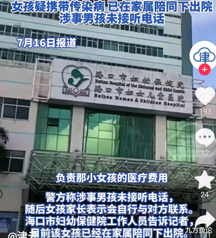 说是女孩还有某种会传染的疾病。这就更让人担心了。她年纪轻轻不懂得保护自己,这是父母的责任,更是她自己的责任。现在的孩子确实难管。不是父母不管,是管到最后心伤透了,也没办法了,只好让她去吃社会的苦,让社会鞭打。