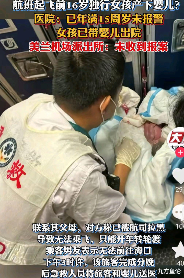 7月12日,在海南海口一架刚要起飞的飞机上,有个独自乘坐飞机的女孩肚子痛。原以为她是有痛经,没想到她是要生孩子了!